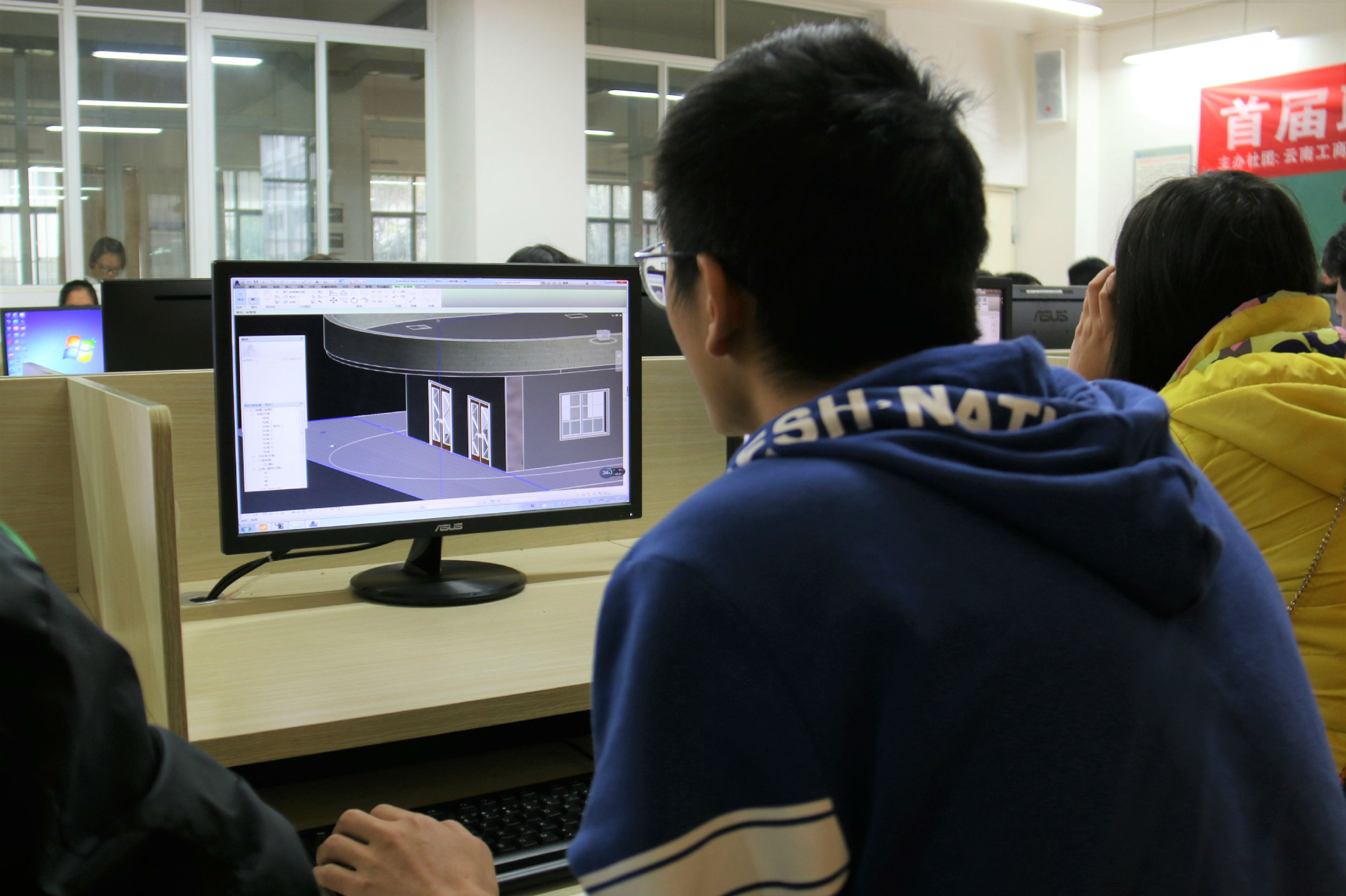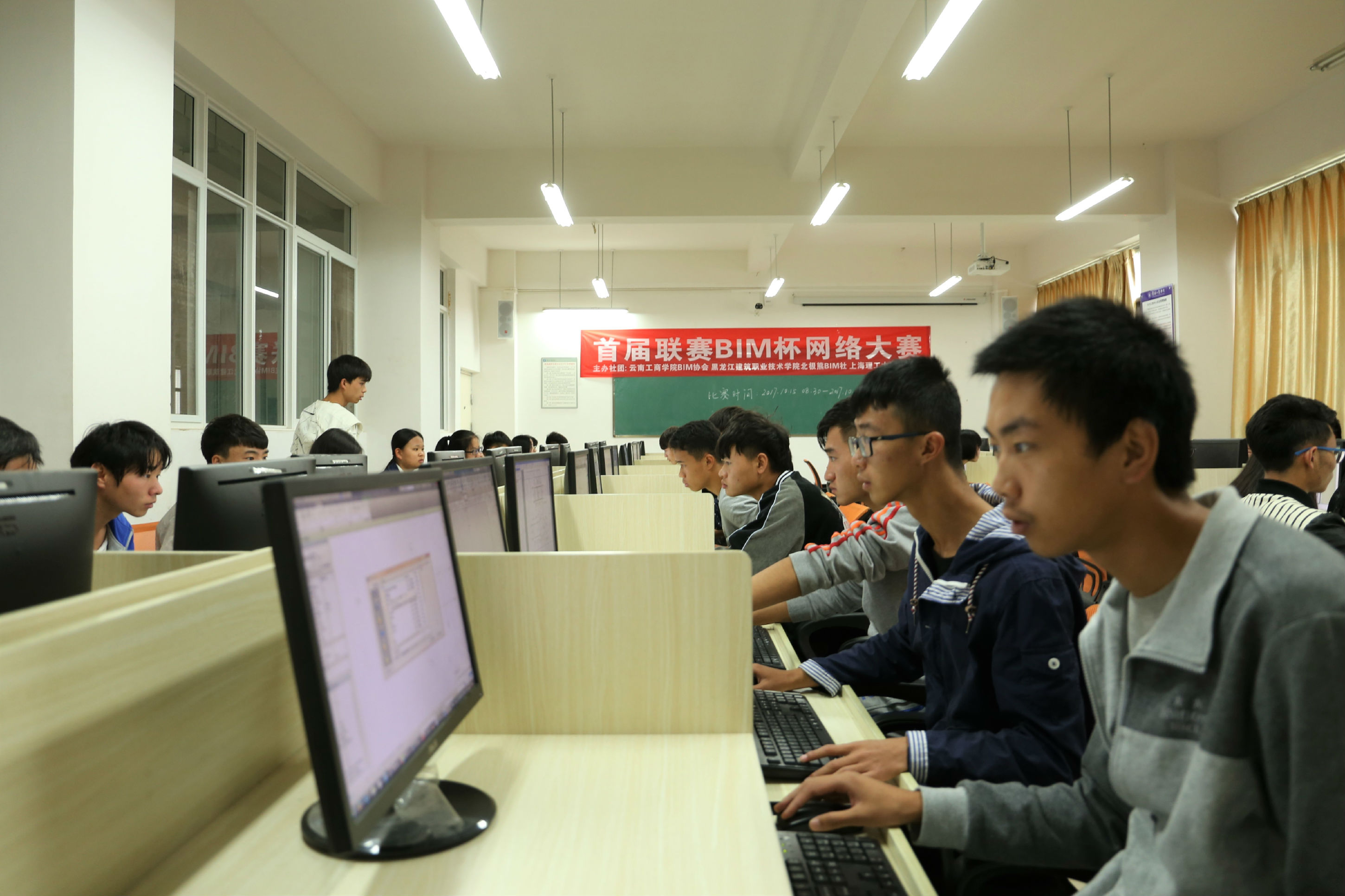10月15日上午,首届联赛BIM杯网络大赛在我校至善楼一楼举行,此次大赛是由云南工商学院BIM协会、上海理工大学、黑龙江建筑职业技术学院主办,大赛面向全国各高等院间展开。我校40多名精英参赛,一决高下。