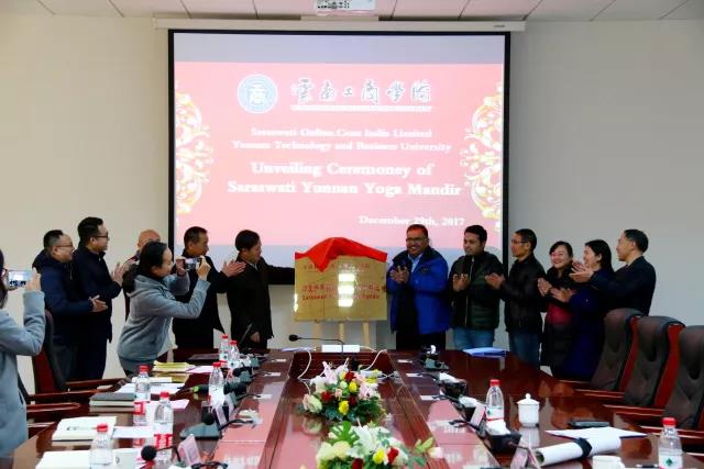 12月29日上午,印度萨帝欧莱(云南)瑜伽中心揭牌仪式在我校行政楼一楼会议室举行。我校高卫国副校长、李翔副校长等领导出席了会议,与印度教育在线公司总裁Ganguli先生、Sangen国际公司总裁Monirul先生进行洽谈。会义围绕三个议题展开:瑜伽中心揭牌、留学生招生事宜以及寒假师生印度游学见面会。