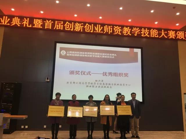 此次省级大赛5所学校获得优秀组织奖,云工商位列其中之一。就业服务中心主任李歆代表我校出席颁奖仪式,三个奖项的获得是我校今年在创新创业工作中再创的佳绩,不仅彰显了我校创新创业教育的实力,更是我校注重创新创业教育建设和教学实践取得的新成果,再一次佐证了我校老师创新创业的巨大潜力。
