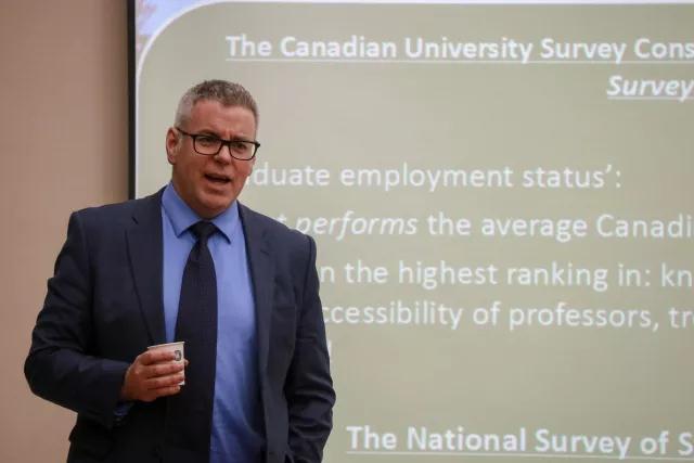 加拿大菲沙河谷大学国际教育学院院长麦大卫、加拿大艾米利亚航空服务有限公司法务部经理郎晓东和中国区市场部经理金菲菲、云南工商学院国际学院院长莫艳萍、我校培训中心主任师帅、我校国际交流与合作处副处长蒲甦、高级顾问樊心民、国际事务专员陈琳等出席本次交流会。