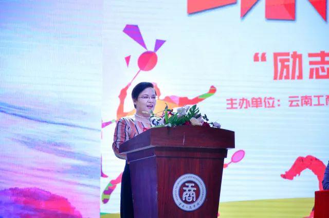 李娅副校长宣布本次球类运动会正式开幕,运动会开幕式在全体师生奏唱《云南工商学院校歌》中落下帷幕。