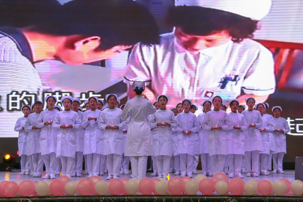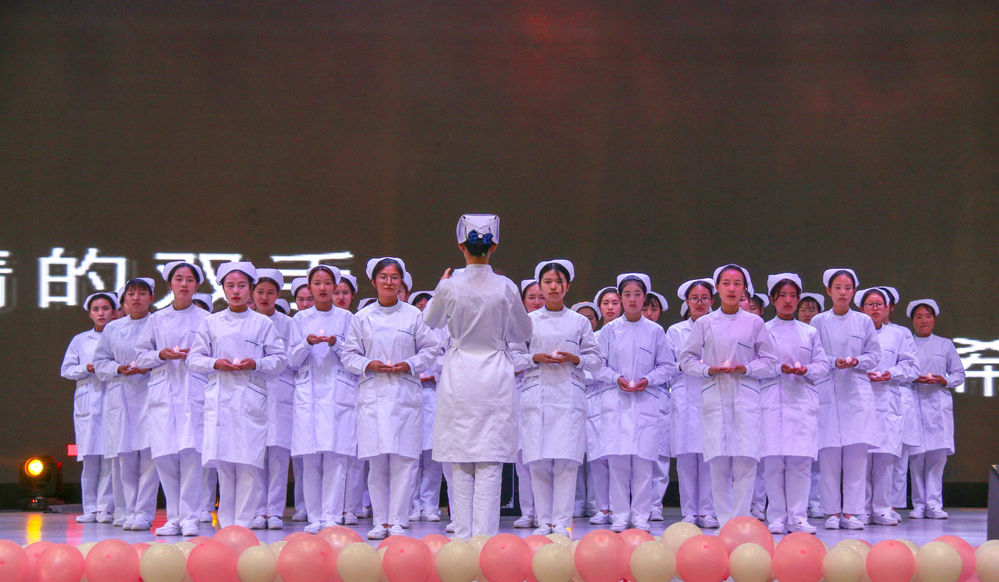 之后,大学生艺术团为同学们带来医务版的《平凡之路》。护理学院学生代表动手操作并讲解临床工作标准操作,展现了护士救死扶伤的精神;她深刻的体现着把微笑写在脸上,把辛酸埋在心底,把燕尾顶在发梢,把圣洁永挂胸间。