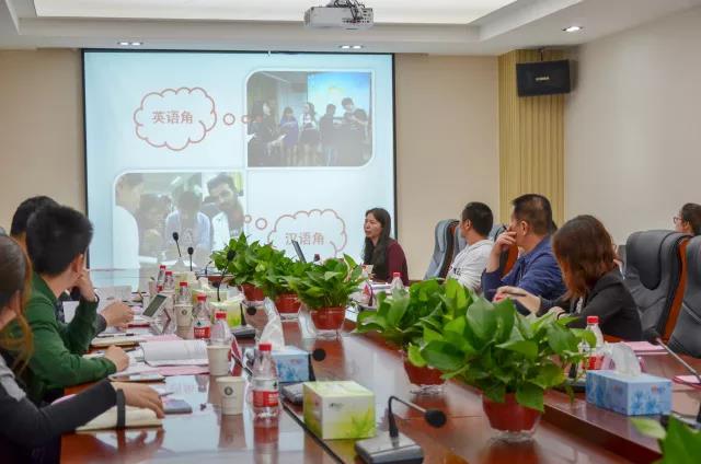 初进校门,国际学院莫艳萍院长带领检查组来到教学楼324教室对留学生课堂进行教学考察。随后,在行政楼518会议室李翔副校长、莫艳萍院长向各位领导介绍了学校概况以及国际教育“送出去”和“引进来”的开展情况。目前,我校留学生总人数为118人,94个新生,24个老生。生源地国家为泰国、老挝、印度、孟加拉、巴基斯坦、也门等近10个国家。课程设置为语言+专业+中国文化,另外还设有第二课堂即开展国际文化节与双语角等活动。此外,我校对留学生安全及生活管理也十分重视,校内安保系统完善,对校内各重要地点的监控也十分到位,食堂菜肴丰富,另还设有两个清真食堂以及各类特色小吃。为留学生营造了良好环境。