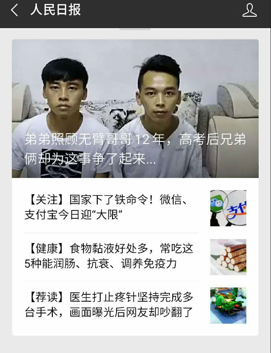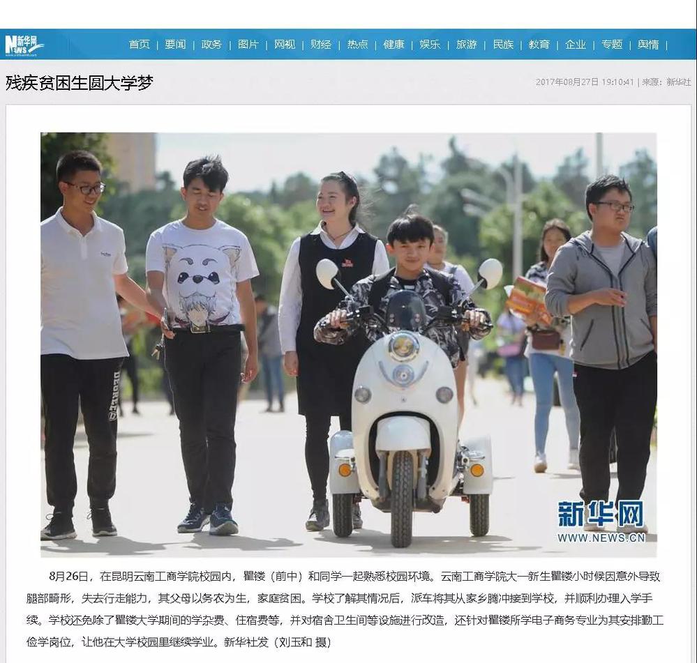 最近两天,《人民日报》、中新社、云南网等全国多家媒体集中报道了云南好弟弟照顾无臂哥哥12年,兄弟俩希望在同一所大学圆梦的事迹。昭通市巧家县三中的毕业生吴建智,照顾自幼失去双臂、生活不能自理的哥哥从小学到高中12年。2018年,怀揣着梦想的俩兄弟一起参加了的高考,但二人的分数高低不同,被同一所学校录取的机会渺茫。吴建智说,希望能和哥哥在同一所学校,既方便照顾他,也不耽误自己。