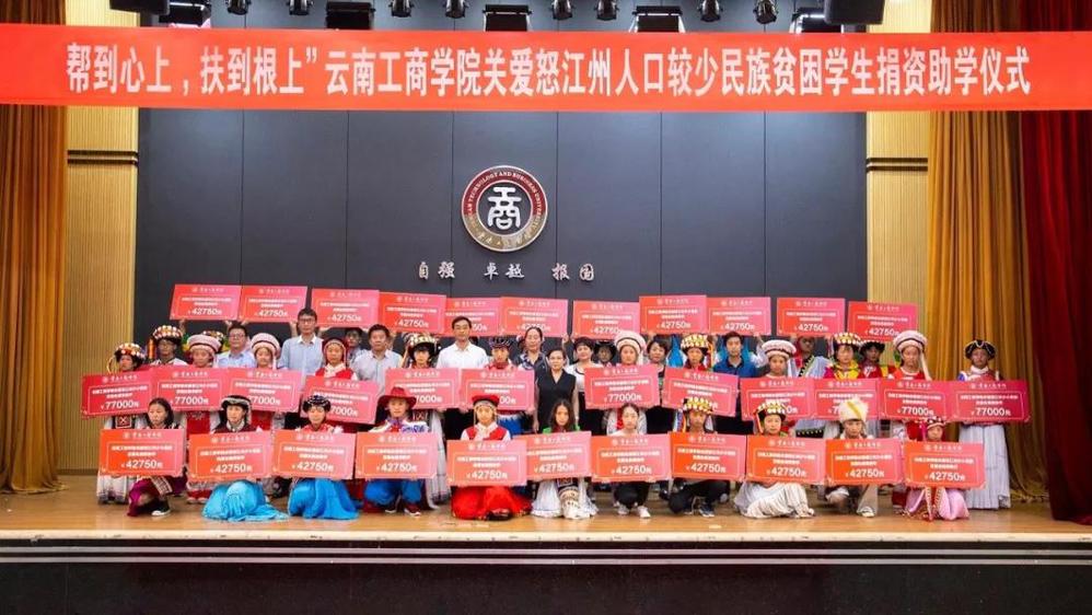为积极响应党中央、国务院、云南省委、省政府关于'不让一个学生因家庭经济困难而失学'的号召,云南工商学院先力先行,9月1日,我校滇西青年创业学院'帮到心上 扶到根上'关爱怒江州35名人口较少民族及建档立卡户贫困新生捐资助学仪式在新报告厅举行。此举旨在帮助怒江州品学兼优、家境贫寒的学子圆梦大学,促进怒江州更多贫困学子及家庭实现就业和脱贫,同时也是今年滇西青年创业学院为怒江青年学子实现教育扶贫推出的重要举措。