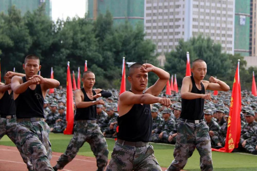气宇轩昂、迈着整齐步伐走来的教官,为新生们带来了一场精彩的特战技能表演。
