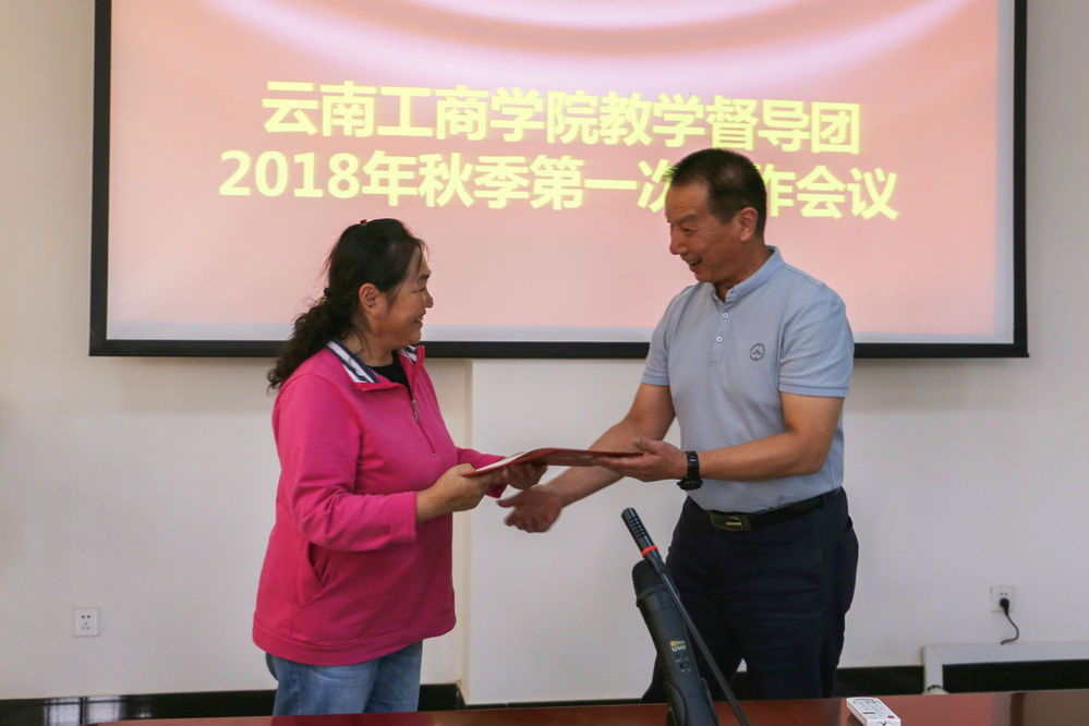 会议上,李翔副校长为专家督导员们颁发了聘书,并代表学校对本次会议做了讲话,他表示,要明确教学质量的概念是教学过程和环节“够不够”和“好不好”的问题;部门要根据工作要求转换职能;要对教学全过程实施监控,全面提高云南工商学院的教育质量,提高人才培养质量。