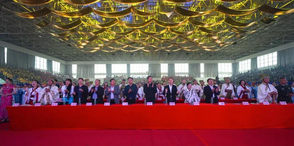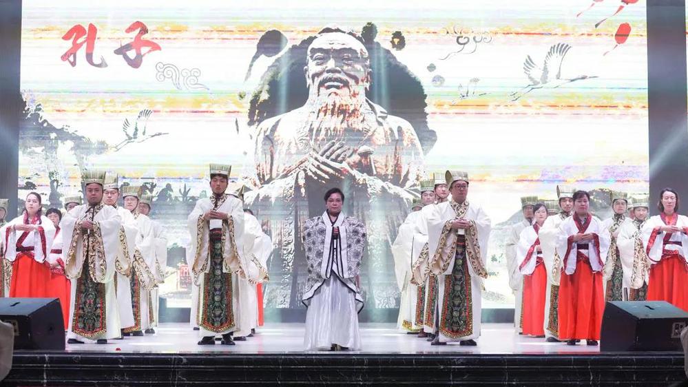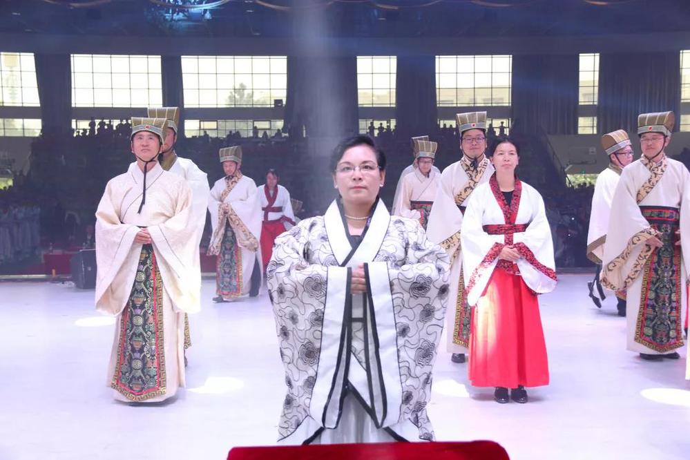 在祭孔大典上,9000多名新生整理衣冠,屏息杂念,胸怀虔诚,心系感恩,先后向孔子像、向云工商老师、向授之自己肤发的父母行叩拜之礼。最后在铿锵有力的励志歌舞《少年中国说》和《云南工商学院校歌》中,本次开学大典完美结束。