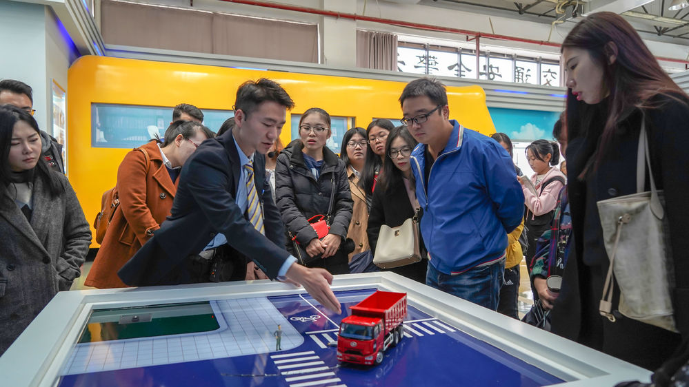 东方时尚驾校含有多个模拟基地,展现在眼前的是许多酒后状态模拟通道、安全距离体验展厅等体验设施,讲解员为辅导员们逐一介绍了遇到交通事故和意外的一些救急方法以及车辆起火逃生知识。