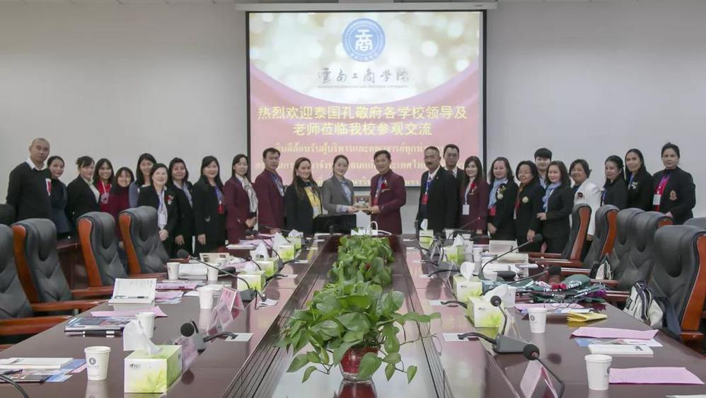 云南工商学院副校长李娅对远道而来的客人表示热烈欢迎,向来访领导介绍:“我校是一所经教育部批准的全日制本科高校,师资力量雄厚,教学特色鲜明,教学质量科研水平较高的应用型国际化本科大学,形成工学,商学为优势特色,文理并重多学科协调发展的格局,希望和泰国的各学校开展进一步交流与合作。”
