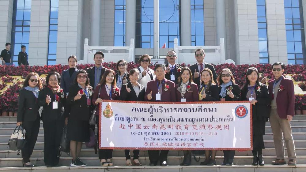 10月16日,泰国孔敬府教育局长 Mr.Phumiphat Ruangla率领泰国东北大学、瑟清迈技术学院、郭佩中学、伴同中学、伴那阔中学、孔敬欧阳语言学院等领导一行莅临我校参观交流。此次交流不仅为两国青年学子构建了一个跨文化学习交流的平台,也为双方进一步开展留学、交换、带薪实习、海外就业等交流合作铺平了道路。