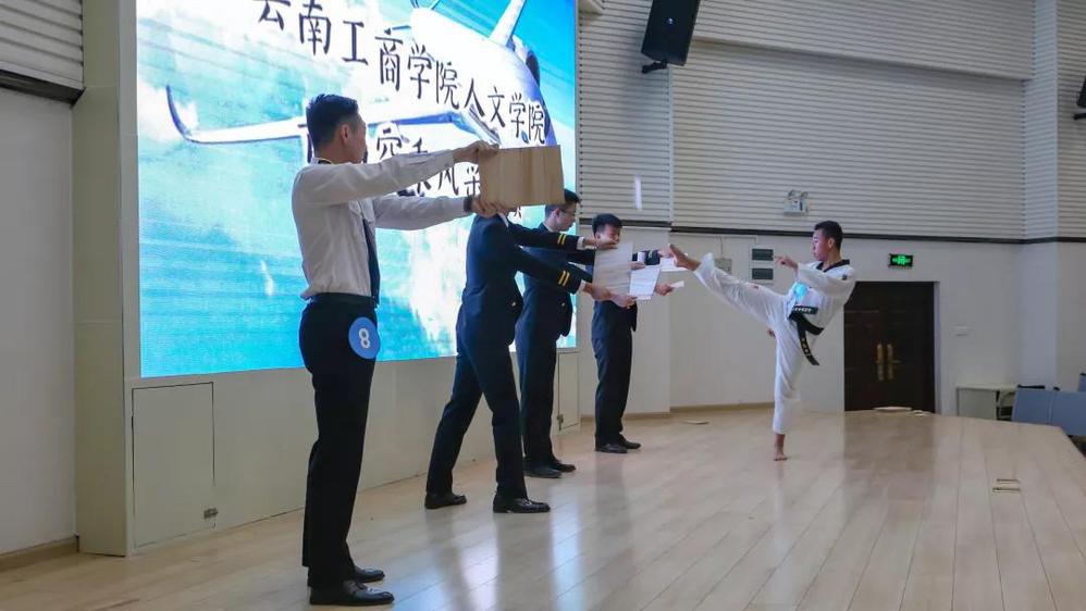 第二环节是才艺展示,多才多艺的空乘学子们不仅在礼仪上出色,在比赛舞台上,她们向我们展示了连连叫好的跆拳道、棍斗格术、灵动的舞蹈、优美的歌喉以及深情款款的朗诵,尽显个人风采,尽饱在座眼福。