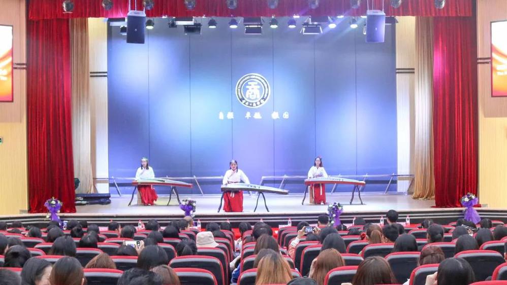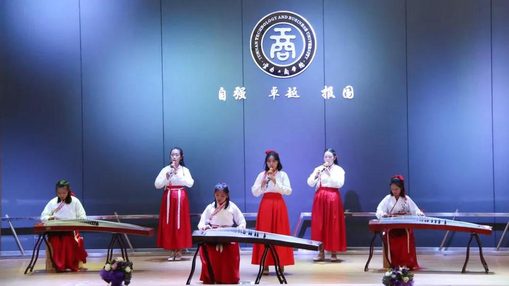 我校色锦瑟民乐团的学子,以清脆悦耳的古筝、委婉动听的葫芦丝,演奏了《青花瓷》,配着唯美的汉服,彰显了中华民族传统民乐和汉服的古典美。
