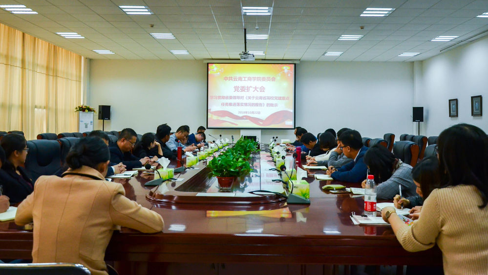 为认真落实高校党建重点工作任务,扎实推进基层党组织规范化建设。根据省委组织部和高校工委通知要求,10月22日,云南工商学院党委在力行楼一楼会议室召开扩大会,推进党建重点任务落实。我校党委班子成员,全校各基层党组织党务干部参加会议。