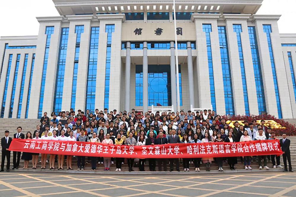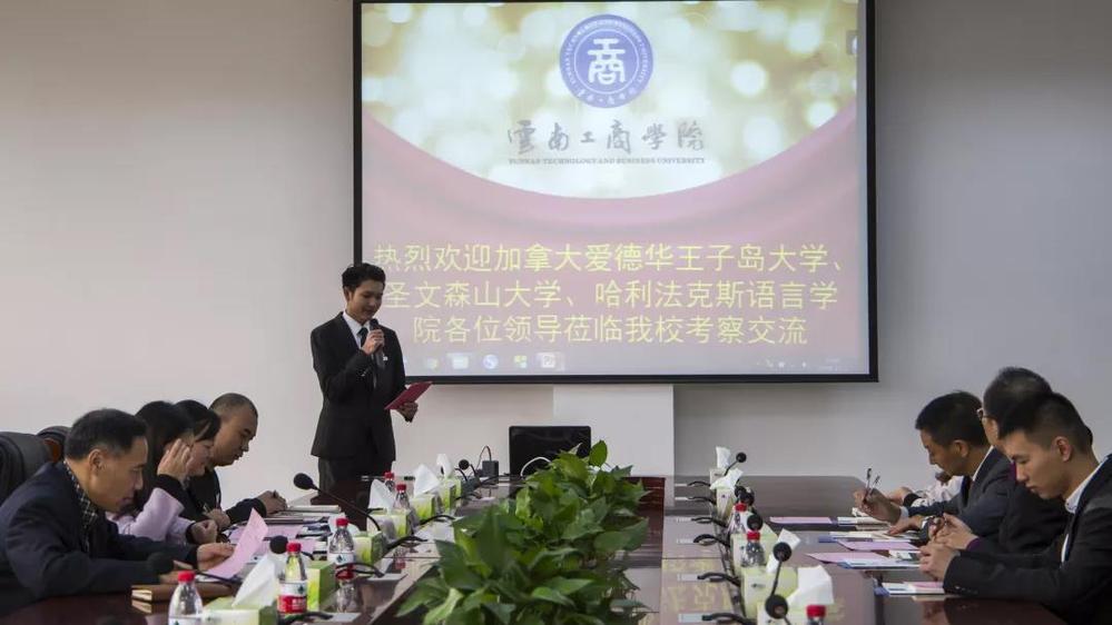 近日,云南工商学院与加拿大爱德华王子岛大学、圣文森山大学、哈利法克斯语言学院领导莅临我校进行考察交流活动并建立联合培养基地。本次交流不仅为两国学子的相互学习交流提供了平台,同时也促进了双方的友谊,携手共筑国际化教育之路。