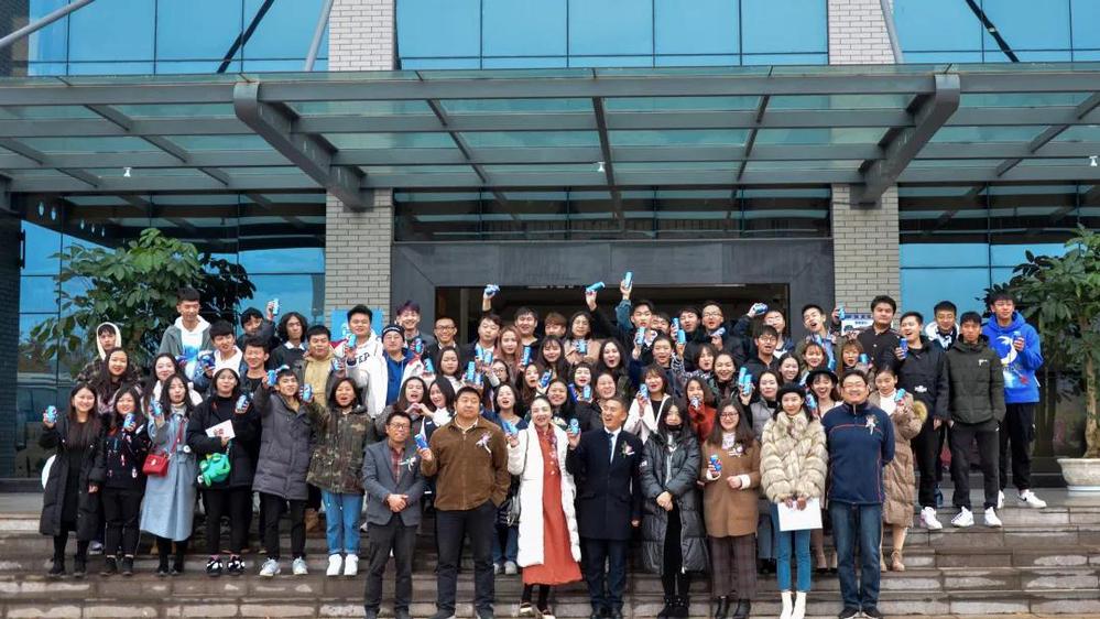 作品开展之前,设计学院张卫伟院长、各班辅导老师以及设计学院毕业生们拿着“百事可乐”拍了合照。寓意着同学们踏进社会,开始人生新的旅程之后,事事顺心,事事可乐。