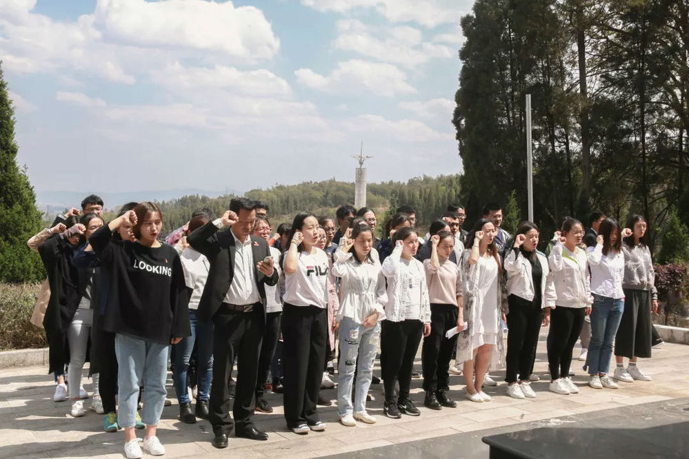 2019年4月2日13时,由建筑工程学院教工党支部和学生党支部组成的祭拜团体向着嵩明县烈士陵园迈开了步伐。