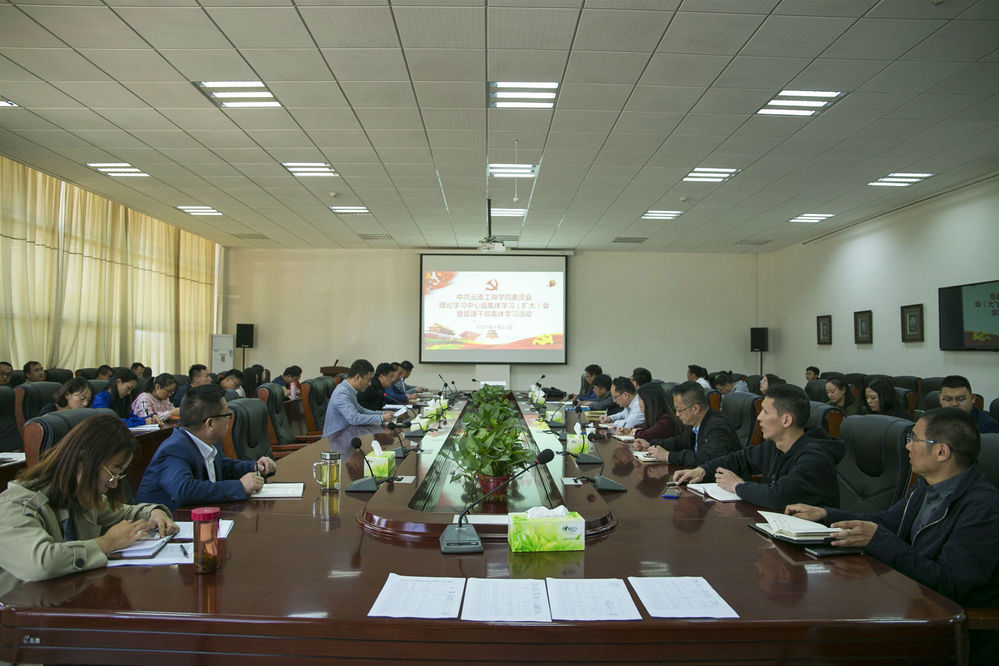 4月12日,云南工商学院召开党委理论学习中心组集体学习(扩大)会暨管理干部集体学习会,传达学习习近平总书记在学校思想政治理论课教师座谈会上的重要讲话精神。