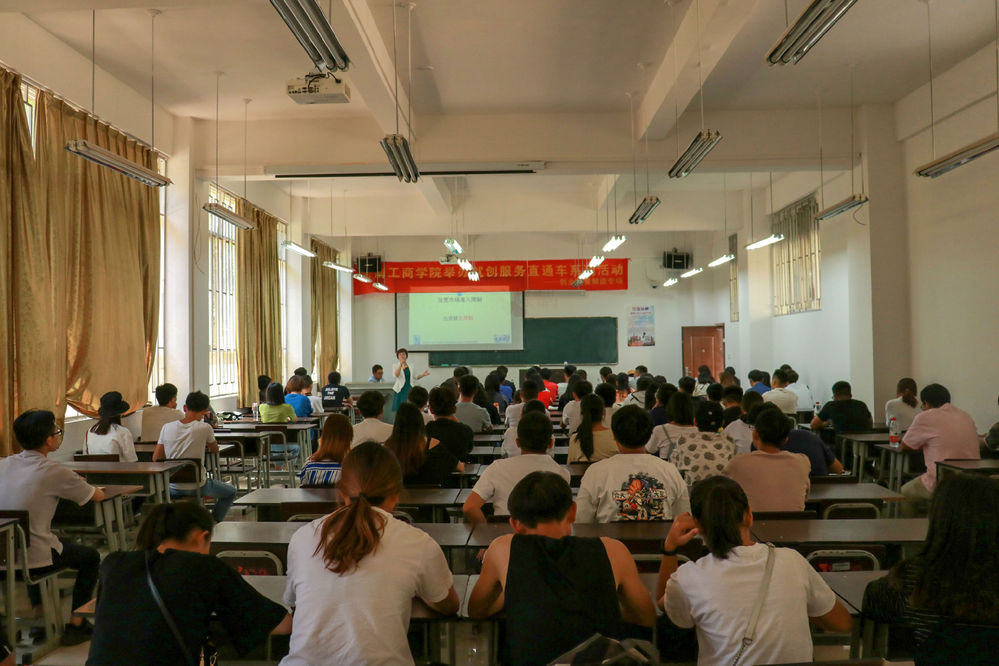 为提升本校毕业生就业质量,以创业带动就业,实现毕业生更高质量、更充分就业,5月7日,云南工商学院就业指导中心邀请昆明市人力资源和社会保障局专员、昆明市双创联盟副秘书长、国家SIYB创业培训项目周媛讲师到校,开展就业创业服务直通车系列活动之政策解读专场活动,与到场的创业者和有创业意愿的同学面对面,进行创业补贴政策解读及创业扶持资金申请流程进行知识讲解并解答疑问。