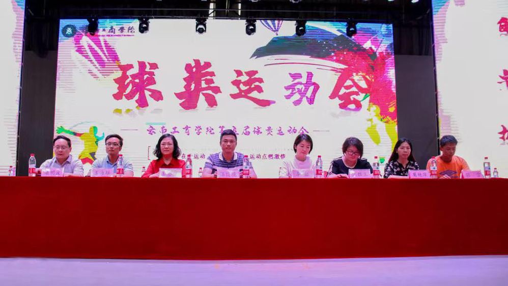 5月16日下午,云南工商学院第五届球类运动会开幕式在体育馆隆重举行。