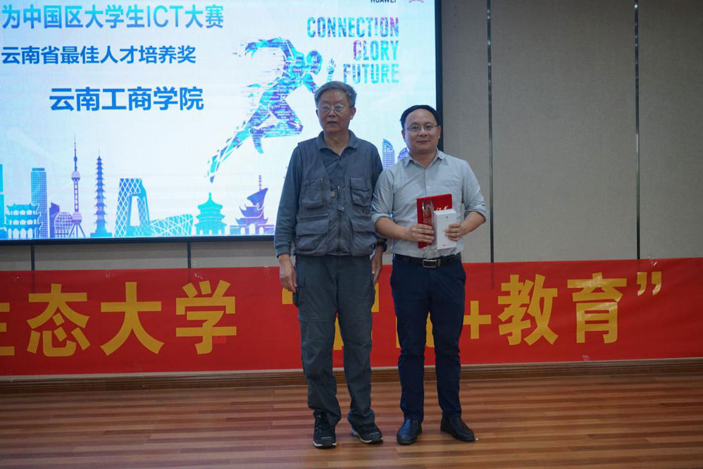这并非是华为第一次授予云南工商学院奖项,2014年起,云南工商学院信息工程学院与华为共建华为ICT学院,今年3月21日到22日,华为中国生态伙伴大会2019在福州海峡国际会展中心拉开帷幕。会议共邀请了数十所高校,上万家公司,20000余嘉宾参加,一同踏上智能进化之旅,共赢生态未来。会上,华为集团授予清华大学经济管理学院、北京大学光华管理学院最佳人才生态战略合作伙伴奖称号,授予东北大学、华中师范大学等院校优秀创新人才中心称号,授予云南工商学院等院校优秀华为ICT学院称号。高卫国副校长、信息工程学院潘明波院长共同受邀出席本次大会并代表学校上台领奖。