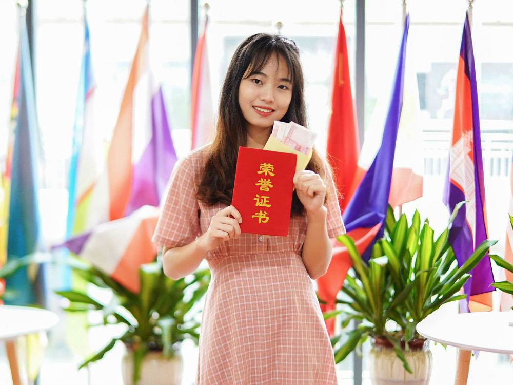 近日,云南工商学院越南留学生范氏秋香通过了汉语水平HSK五级考试,学院为她免除大学四年学费,留学服务中心主任马超老师还为她颁发了奖状和奖学金。