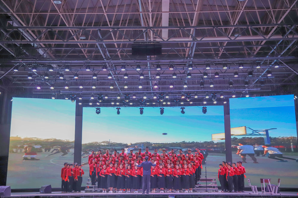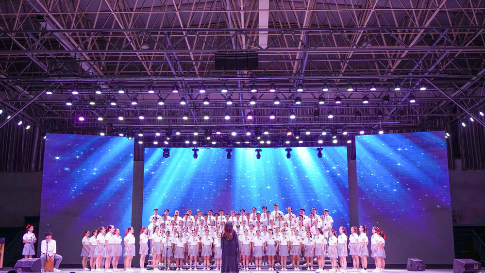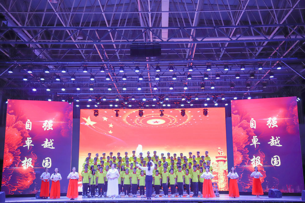 响亮的歌声是对祖国的祝福。