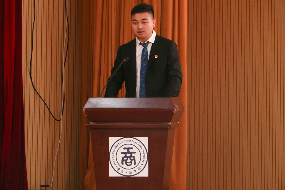 2019级工商管理1班的程宏涛同学代表新党员发言,他说,2016年大一刚入学他便提交了入党申请书,随后积极参加党组织活动,经过半年考核,荣幸成为了一名23期入党积极分子。他表示,将把成为预备党员作为新的起点,经得起考验,努力为党和人民服务。