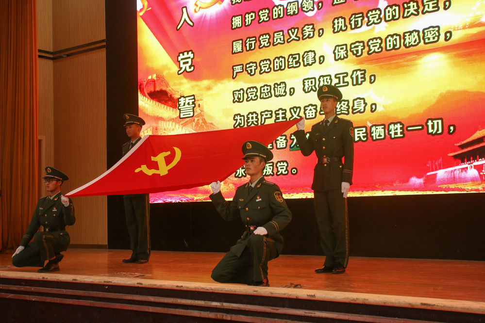 随后,全体起立,党委委员,纪委书记魏佳平同志带领预备党员宣读入党誓词,大家向着党旗宣誓。参加仪式的老党员也一并重温了入党誓词。党旗代表了党,誓词概括了党对党员的要求,也概括了党员对党组织和党的事业应承担的政治责任。