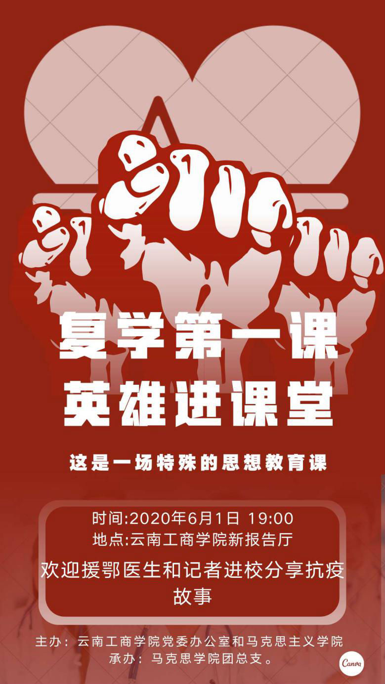 2020年6月1日,云南工商学院全面迎来了开学复课。学校马克思主义学院邀请到了昆明市中医医院援助湖北医疗队护理组组长廖文静,昆明市中医医院(呈贡院区)骨伤科临床护士、云南省第三批援助湖北医疗队石永根,以及云南省电视台都市频道专题部记者李峰进校开展开学第一课,为全体师生分享抗(疫)故事,向学生科学普及防疫知识。这场特殊的思政课,通过线上直播和线下分享相结合的方式展开。