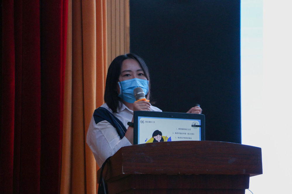 廖文静通过故事分享和图片展示的方式展开宣讲,她用朴实生动、浅显易懂的语言,讲述了在湖北咸宁抗(疫)一线发生的感人故事她说:(即使再难再委屈,我也不是一个人在战斗,我的同事们,全国各地的援鄂医护人员,都在和我一起奋斗。)