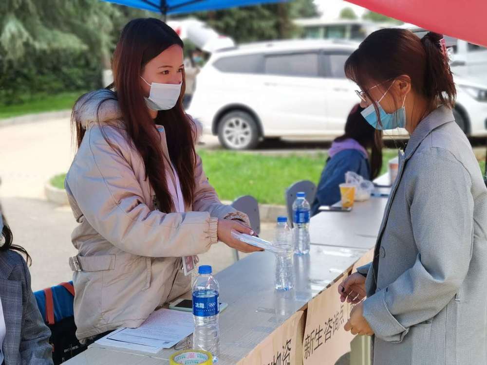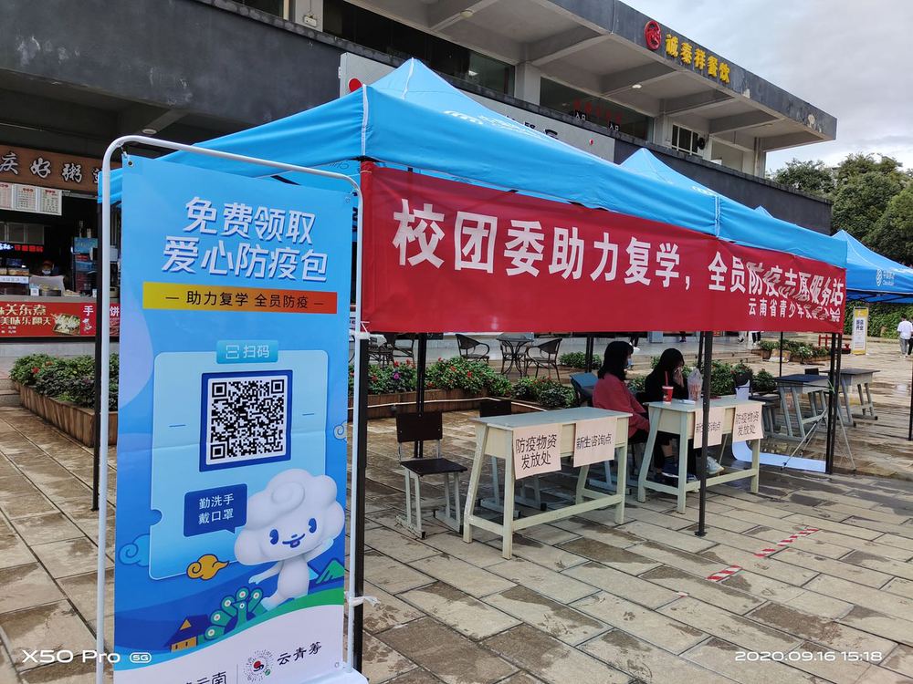 2020年9月17日是云南工商学院新生报道的日子,为帮助学校严格防疫,让新生安心报道,同时结合省委、省政府关于(一部手机游云南)全域旅游智慧化平台以及团省委对于(一部手机做公益一云青筹)平台的持续推广普及,云南工商学院校团委联合云南基金会安排对刚入学的新生分发(防疫爱心包)。里面包含口罩、消毒湿巾等防疫物资,现场由经过培训的志愿帮忙分发。