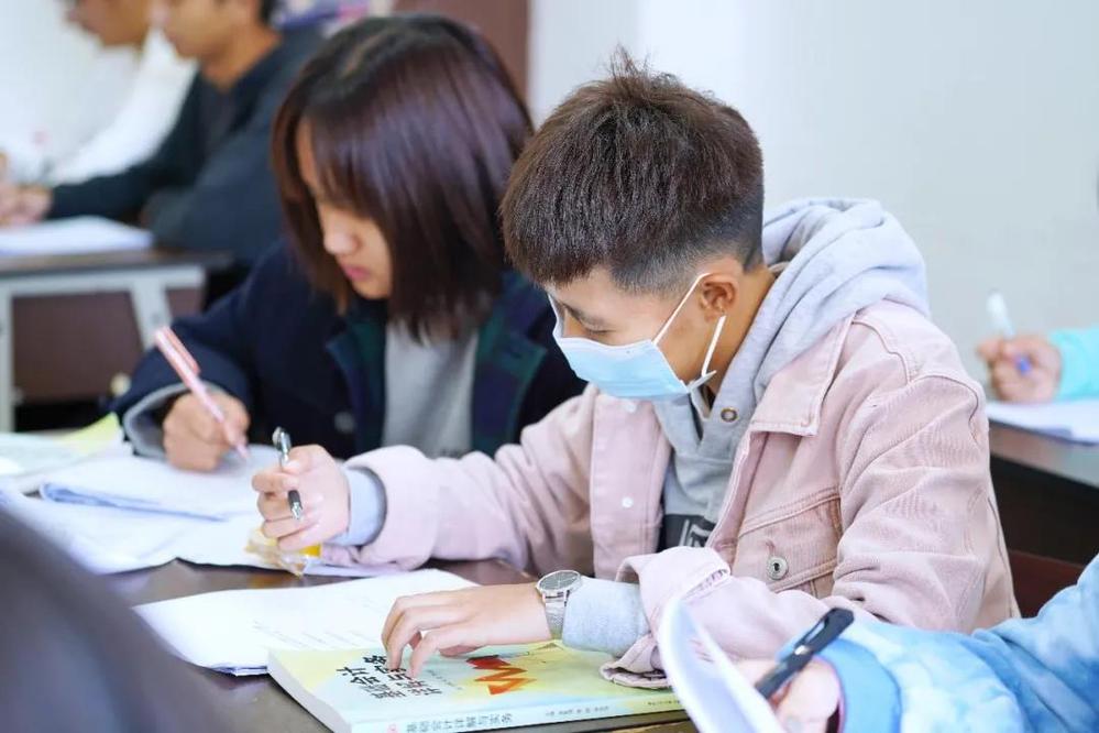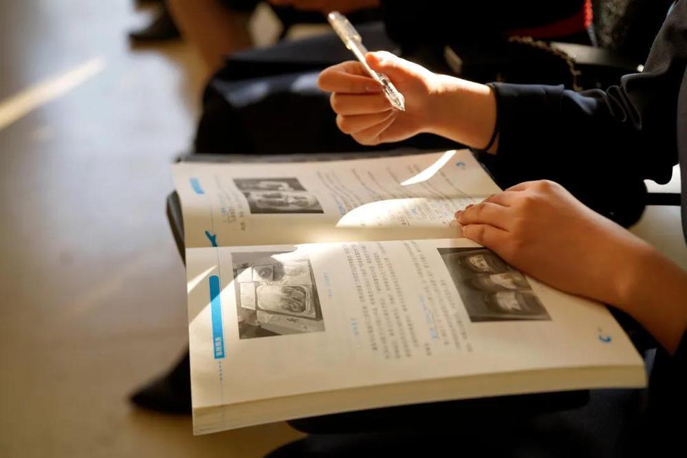 同学们认真读书的脸庞上