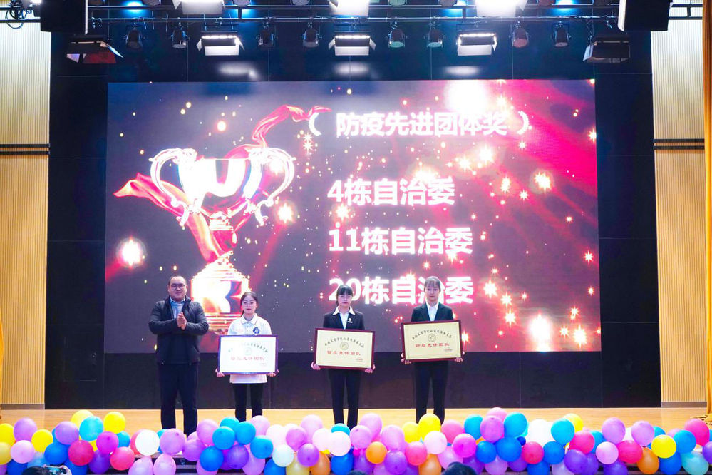 同时,活动现场也对防疫先进个人、防疫先进集体、突出贡献、优秀干部、优秀干事等进行了表彰,以褒奖他们为校园防控、为校园安全、为宿舍安全做出的突出贡献。