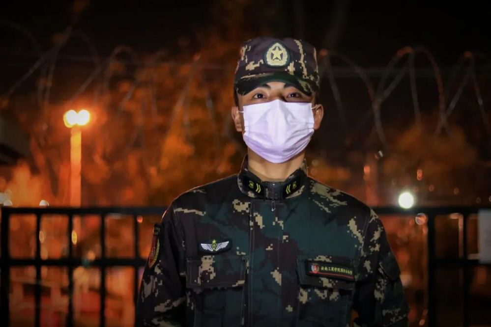 一直值守在围墙周边的国防后备营尚益安同学,换岗的时候身体都已经麻了。他说:“我是一名退役军人,我也为这个身份一直骄傲着,现在能为大家做一些事,我觉得特别荣幸。苦点累点没关系,为人民服务,一切都是值得的。”