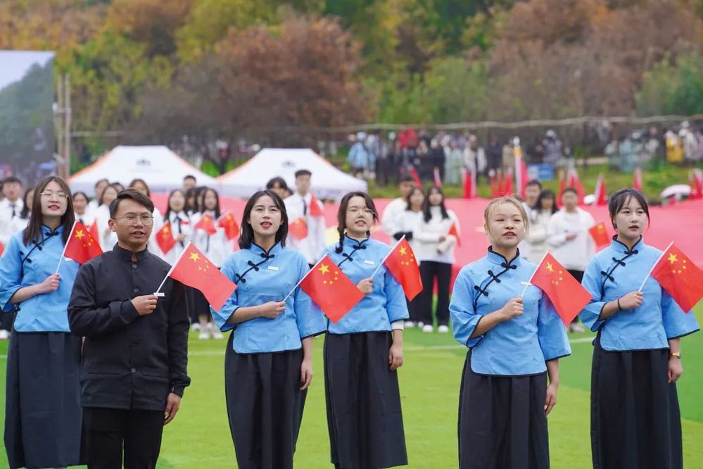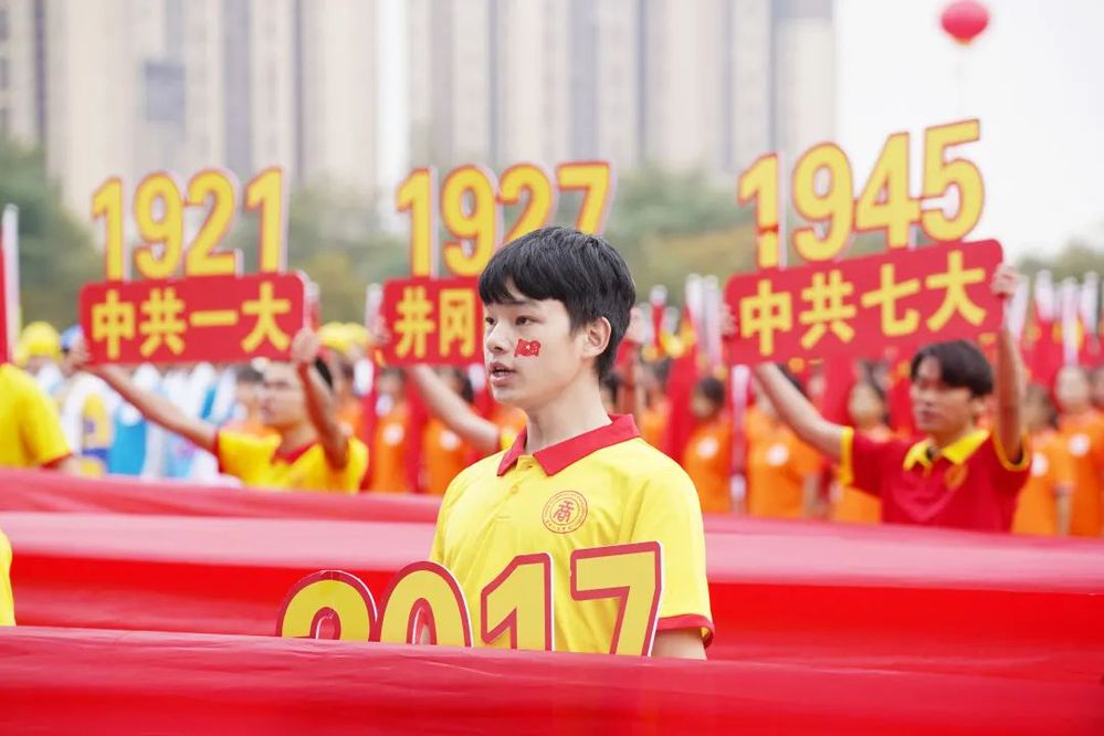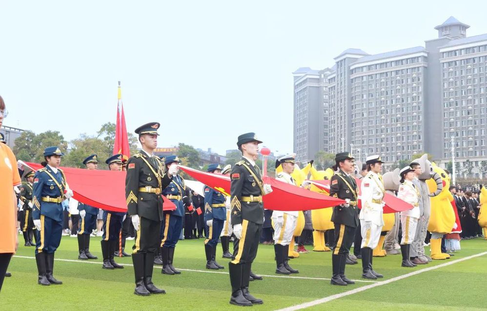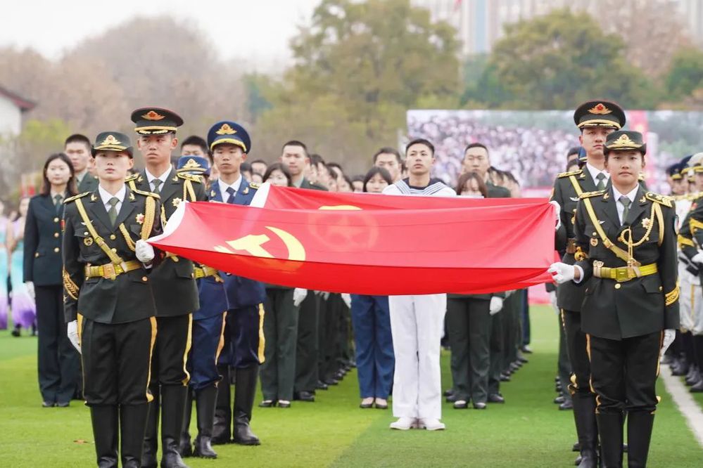 伴随党旗、国旗、校旗缓缓入场