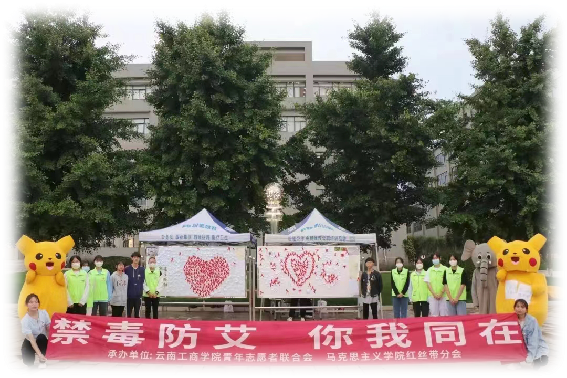 以爱感化对艾滋病患者有偏见的人,让大家不再恐艾。增强职教新城大学生和附近社区居民的防毒防艾意识、自我保护意识和社会责任感,培养健康文明的生活习惯。