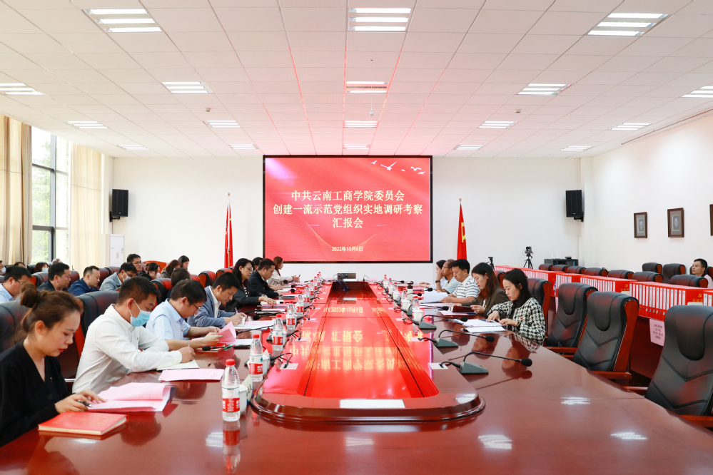 10月6日,中共云南省委教育工委第一考察组莅临云南工商学院,对我校创建“一流党建”示范项目进行实地调研考察。学校执行董事姬其佐,党委书记李国琼,党委副书记佘达文,党委委员、党委六部一室负责人及各党总支、支部书记参加。会议由党委副书记、校长周刚主持。