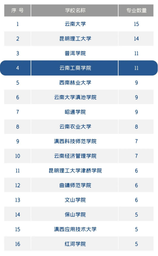中国网讯 1月6日,教育厅公布了云南省2022年第五轮高校本科专业综合评价结果。此次评价中,云南工商学院11个专业较上一年有跨等级提升,数量仅次于云南大学、昆明理工大学,位居同类院校第一。