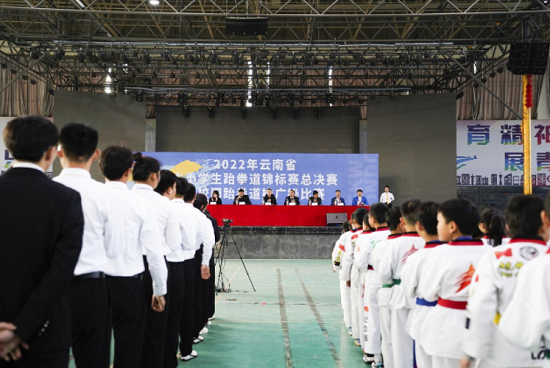 2月7日,2022年云南省中小学生跆拳道锦标赛总决赛暨校园跆拳道推广操比赛在云南工商学院举办,来自全省49支代表队的500余名运动员参赛。