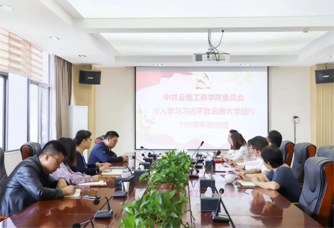 在云南大学建校100周年之际,习近平总书记致信向云南大学全体师生员工和广大校友致以热烈的祝贺和诚挚的问候。习近平总书记的贺信在云南工商学院引发广大师生热烈反响。4月21日,校党委召开专题会议,深入学习习近平总书记贺信精神,党委班子成员及党委七部一室负责人参加学习。