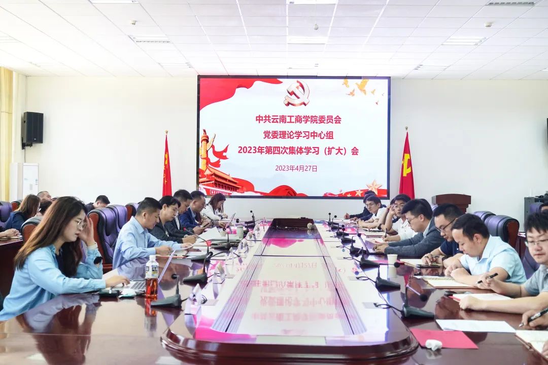 4月27日,云南工商学院党委理论学习中心组举行2023年第四次集体学习(扩大)会,深入学习贯彻党的二十大精神,学习习近平总书记有关主题教育系列重要讲话精神和关于调查研究的重要论述,学习中央、省委、省委教育工委关于调查研究有关部署和要求,在教育工委巡回指导组指导下,统筹做好学校调查研究,确保主题教育高质量开展。会议由党委书记李国琼主持。