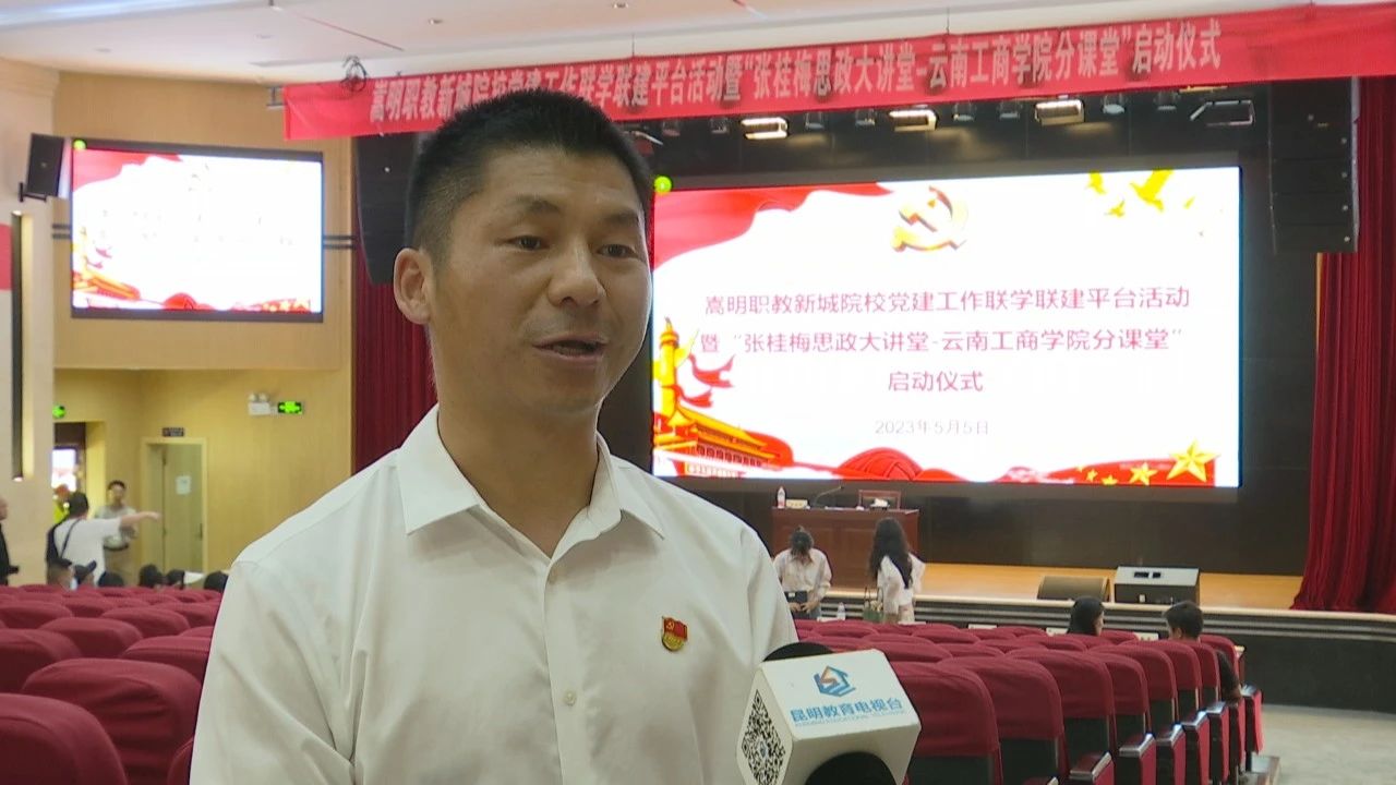 云南工商学院党委副书记 佘达文:“我们接下来要开展一系列的理论宣讲,包括理论宣讲比赛、理论宣讲报告,同时开展座谈交流,包括实践教学等等这样一些活动,把咱们的思政课,也就是‘行走的思政课’‘走心的思政课’切实落实落地。同时,进一步推进与属地嵩明县校际合作,进一步地推动我们大中小学思政课一体化的建设,为我们学生的思想政治教育提供一个平台。”