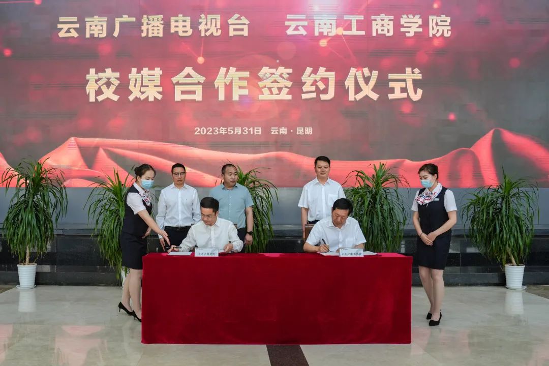 5月31日,云南工商学院与云南广播电视台举行校媒合作签约仪式。云南广播电视台党委副书记孙建松、副台长马建宇,云南工商学院执行董事姬其佐、校长周刚出席签约仪式并座谈。