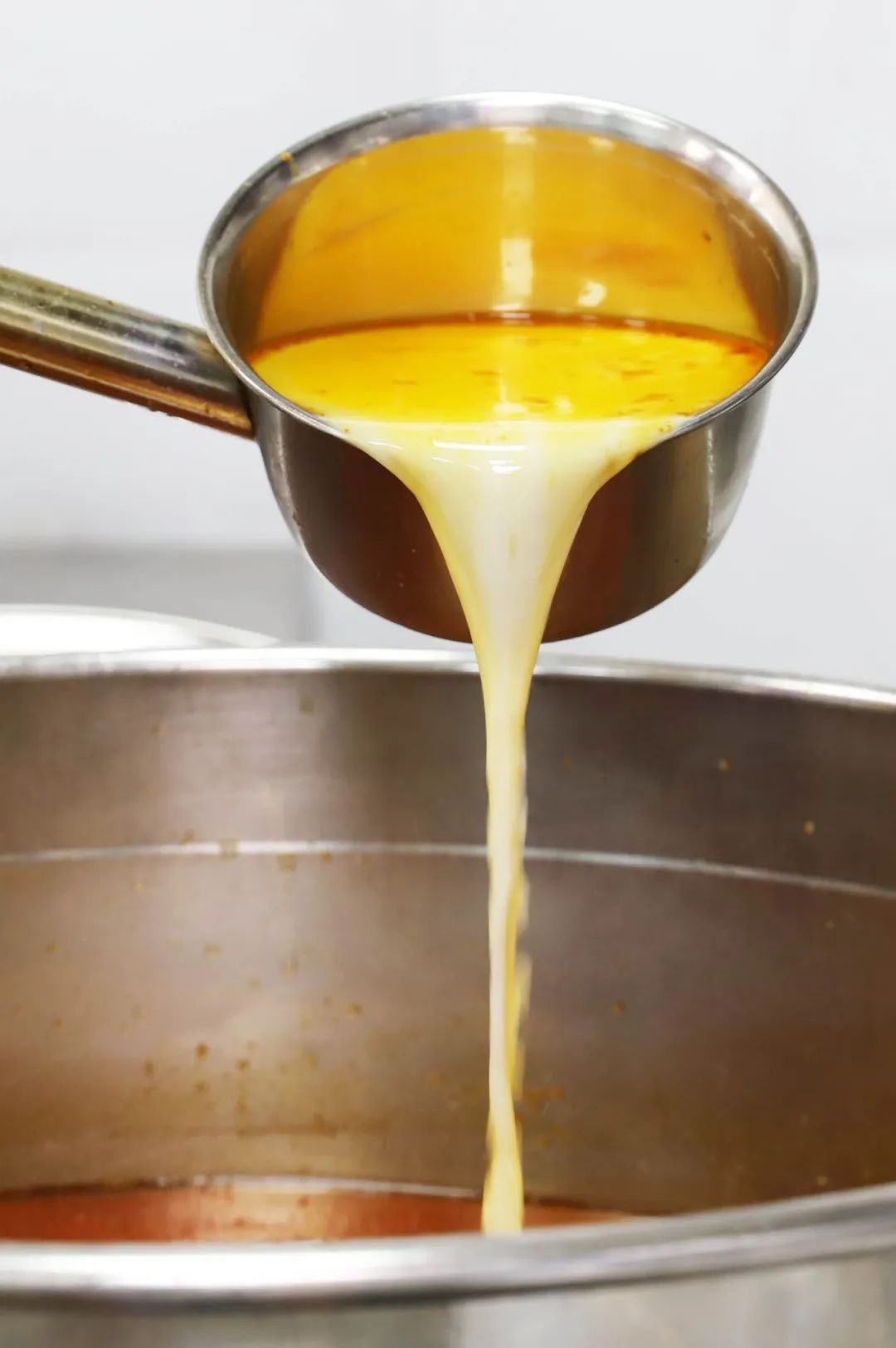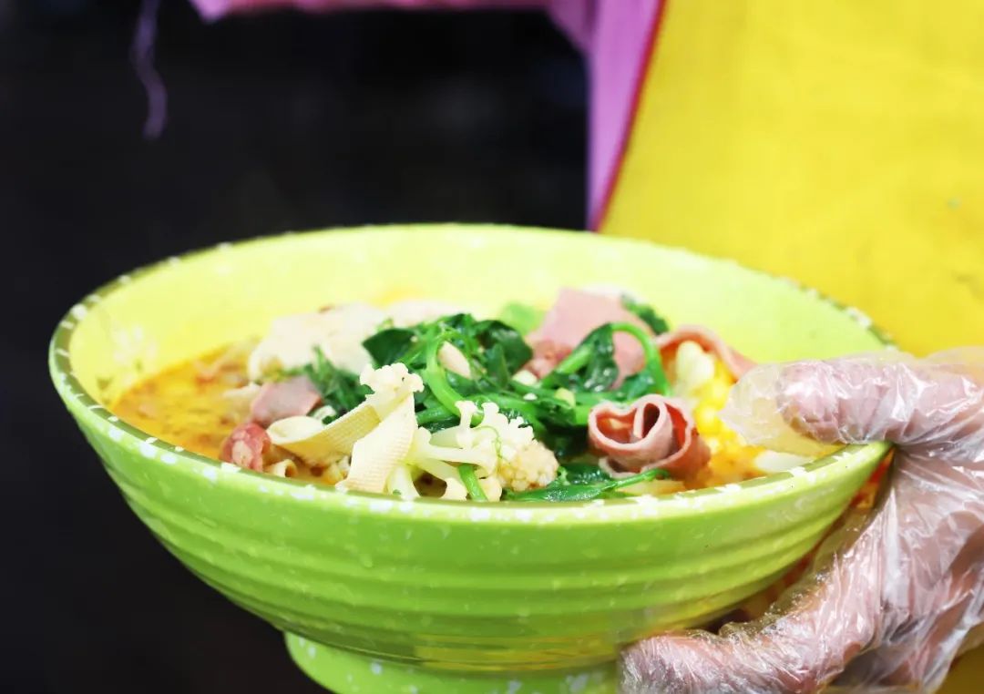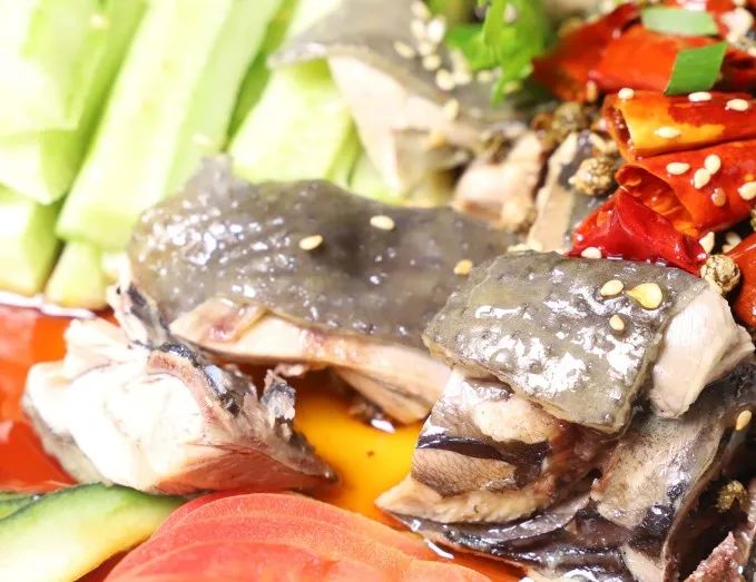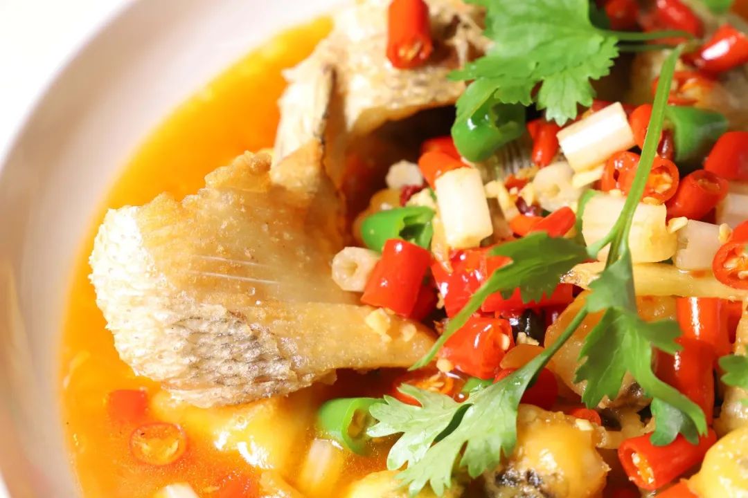 白色鲜嫩细腻的肉蘸一下红色浓厚香辣的汁