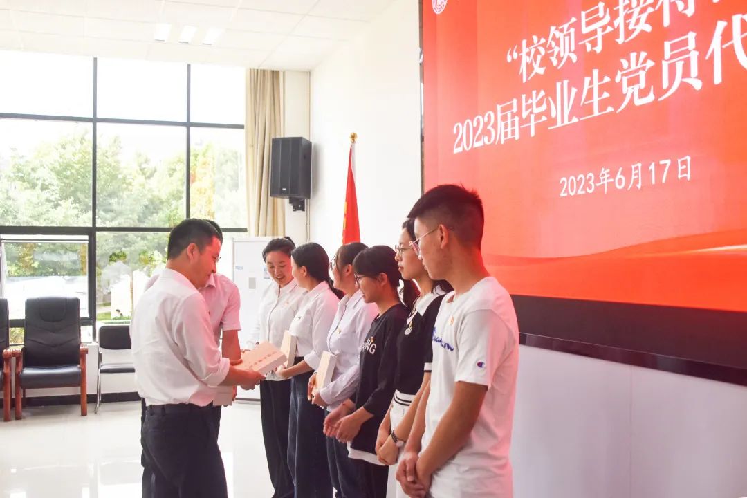 座谈会上,校领导为毕业生赠送学习书籍、颁发纪念品并与全体毕业生代表合影留念。