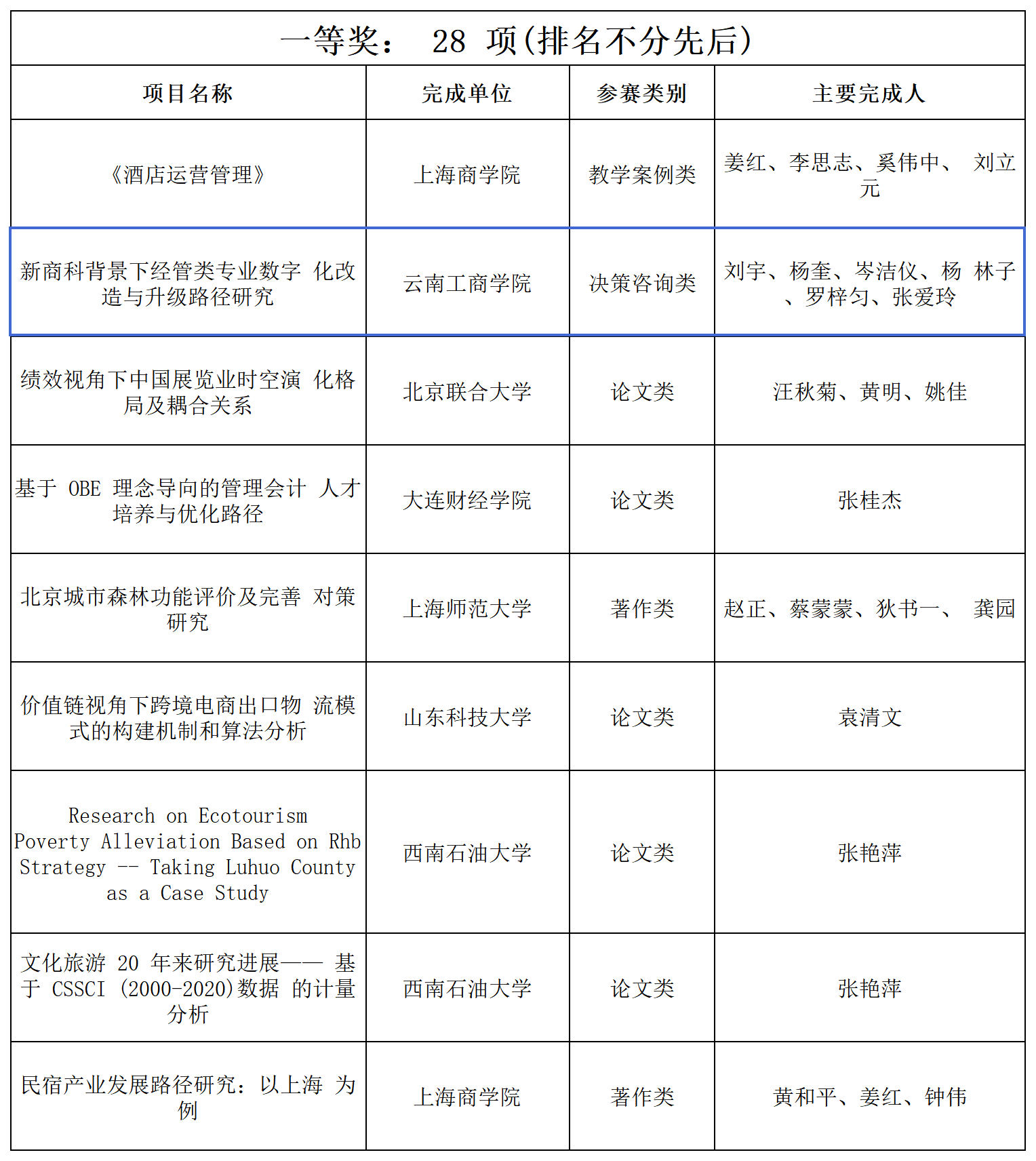 近日,由中国贸促会商业行业委员会与中国国际商会商业行业商会共同主办的全国商科教育科研课题大赛公布评审结果,云南工商学院经济与管理学院教师团队《新商科背景下经管类专业数字化改造与升级路径研究》项目荣获全国一等奖。