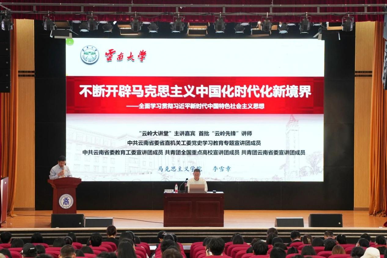 10月17日下午,云岭大讲堂•学习习近平新时代中国特色社会主义思想百场报告会走进云南工商学院。学校特别邀请到云南大学马克思主义学院副教授,硕士生导师李雪章作“不断开辟马克思主义中国化时代化新境界”专题讲座,这也是“云岭大讲堂·云工商讲坛”的第五场报告。学校党委副书记佘达文主持报告会。