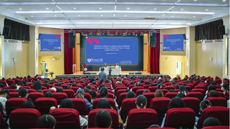 伍尔夫教授结合当下全球范围内学前教育普及状况,围绕其研究团队在非洲加纳开展的长达七年的儿童发展研究成果进行演讲。