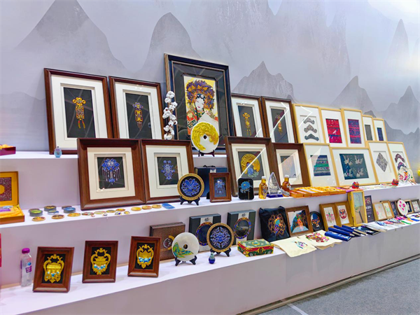 “翠羽银丝”将中国传统点翠、花丝、景泰蓝等手工工艺与云南地方民族特色相结合,创造出精美绝伦、立体感与美感十足的手工装饰画,在展区内吸引大家纷纷驻足欣赏。“点翠是中国传统的金银首饰制作工艺,汉代便已出现。这种复杂的工艺,通过将金属和羽毛完美结合,制成各种美轮美奂的首饰器物,但由于制作原材料的稀缺,一度濒临失传。”谢晶介绍道。